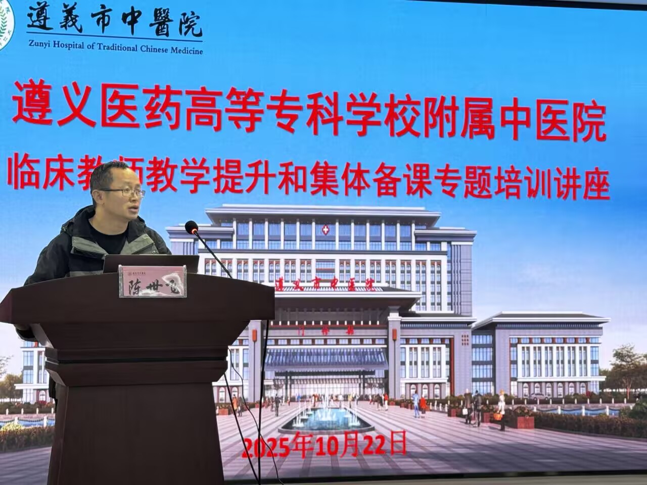 培训首项议程,由学校教务处副处长陈世飞就临床教学相关培训要求作专题说明。他结合当前医学教育发展趋势与学校教学管理规范,对临床教师的教学职责、过程管理以及质量评价等方面提出了明确要求,为后续教学工作的规范化开展奠定了坚实基础。随后,遵义医科大学第一临床学院王德婧教授作了题为《如何上好一堂课》的专题讲座。王教授聚焦“集体备课的有效开展”,从课程设计、内容组织、教学方法、师生互动等多个维度,系统阐释了一堂优质课程的标准与实施路径。她通过生动案例分享了集体备课的组织形式、流程规范及常见问题的解决策略,为在场教师提供了丰富的实践参考。紧接着,遵义医科大学第一临床学院李同欢副教授以《如何有效开展教学查房及实习带教》为题进行分享。李教授结合20多年临床带教经验,详细讲解了教学查房的目标设定、流程设计、学生引导及反馈评价等关键环节,强调了在真实临床场景中培养学生临床思维与实践能力的方法与技巧。 整场培训内容充实、重点突出,现场学习氛围浓厚。参会教师纷纷表示,通过此次学习,对课堂教学与临床带教有了更系统、更深入的理解,为今后更好地履行教学职责、提升教学效果提供了有力支撑。 此次专题培训是遵义医药高等专科学校附属中医院加强临床师资队伍建设、推动教学质量内涵发展的重要举措之一,为进一步规范教学行为、创新教学方法、提升整体教学水平注入了新动力。