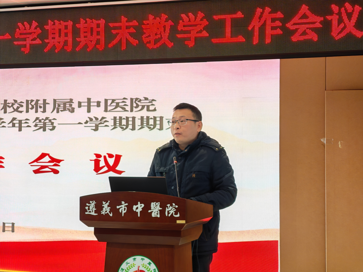 邵珠建副校长肯定了本学期临床教学部在医学人才培养、教学质量把控等方面取得的成绩。并作出以下要求:一要以提升教学质量、人才培养为核心,强化教学责任意识,促使教学赋能临床;二要夯实临床教学根基,加强校院学科双向流动,促进资源共享,为培养医药大健康人才打造通路;三要深化教育教学改革,打造“五个一批”建设,搭建教师发展平台,畅通职称晋升通道;四要加强临床教学质量管理和控制,重视教学督导反馈,及时整改存在问题,才能提质赋能,促使校院高质量发展。